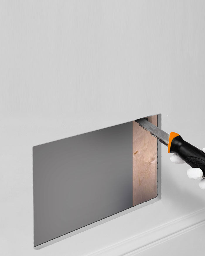 Die Installation des Lüftungsgitter-Tresors ist schnell und einfach. Je nach Wandtyp benötigst du unterschiedliche Werkzeuge: Für Trockenbauwände reicht eine Trockenbausäge oder ein Multitool, für Beton benötigst du einen Bohrer. Wir stellen dir eine schriftliche sowie