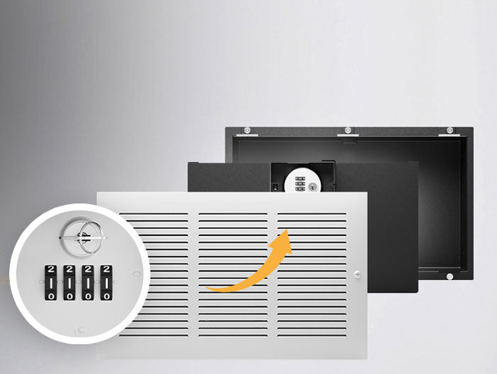 Anders als Büchertresore bietet dieser Einbautresor echte Sicherheit mit einem robusten Metallbehälter und einer 100% echten Lüftungsabdeckung. Noch mehr Schutz? Zusätzlich den Code am Zahlenschloss einstellen!